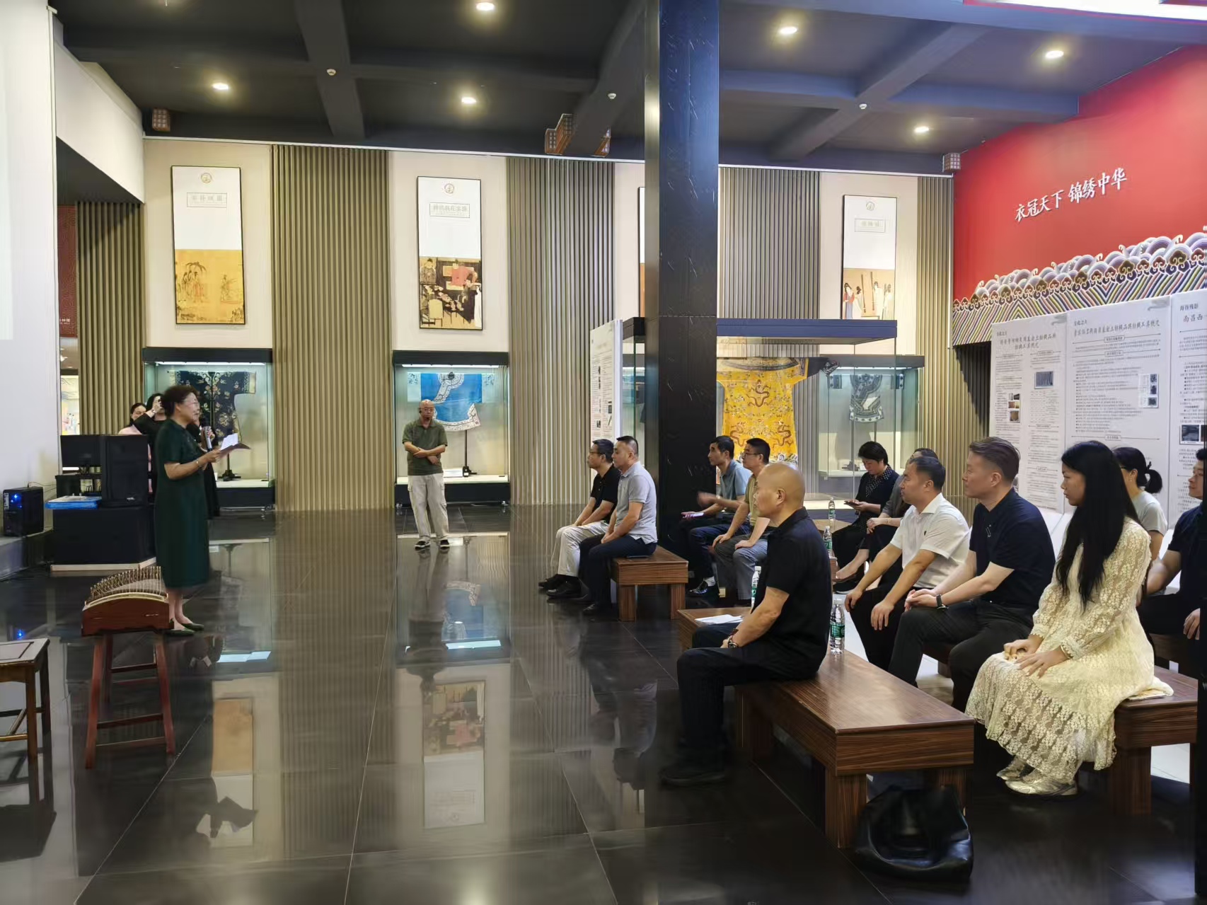 本次展览首次从考古与文献学的角度,对江西省古代纺织品文化的历史进行了较为完整和系统性的梳理。江西省纺织历史底蕴深厚,历代纺织技艺传承有序,在服饰考古方面的发现尤为亮眼:多地遗址中出土的纺织品及服饰遗存,涵盖了丝、麻、棉等多种材质,涉及织造、印染、刺绣等多重工艺,不仅填补了纺织史研究的部分空白,更印证了江西在古代南方纺织业中的重要地位。此次展览旨在吸引更多考古学、历史学、纺织学等领域的专家学者投身其中,推动江西古代纺织品文化研究、工艺复原及文化价值走向更深层次发展。展览内容共分为四个系列、八个章节,包括概貌、方孔之大(东周战国)、海昏残影(汉代)、慈云生辉(北宋)、剪水轻罗(南宋)、烂云生锦(明代)、女亦有礼(明代)、玉润金辉(明代),并设有一个专题系列及一幅历史轴线图,全面呈现了赣鄱地区纺织文化的发展脉络。在参观过程中,八大山人纪念馆馆长周晓健对我馆的展览策划与研究成果表示高度赞赏,并特别提到八大山人纪念馆所藏文物中亦有不少与服饰文化相关的艺术呈现,希望未来两馆能加强交流合作,共同推进赣鄱地区文化遗产的整合研究与展示传播。