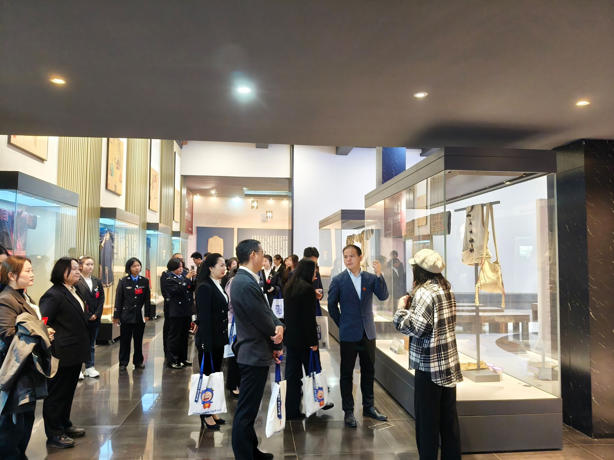 参观过程中,各校团委书记一同考察了我馆特色展区,对我馆丰富的服饰文化藏品给予高度评价。他们仔细观摩了各展区的代表性藏品,并就传统服饰文化的现代转化、文化育人创新等议题与我馆人员展开热烈讨论。唐新强副书记还向嘉宾们详细介绍了我馆在服务学校教育教学、推动文化传承创新方面的重要作用。