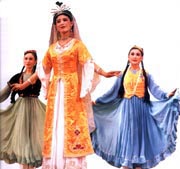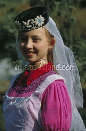 塔塔尔族的女子服饰装束接近欧洲民间服饰,男子服饰与维吾尔族相似。女子上穿窄袖花边短衫,下着褶边长裙,外套绣花紧身小坎肩,头上沙巾系向脑后打结,腰间一条绣花小围裙。脚穿长统袜、皮鞋。耳环、手镯、戒指、项链、领口上的别针,是女子通常的装饰品。塔塔尔族妇女善刺绣。塔塔尔族的服饰干净、整洁、艳丽,表现了一种功利性的美。男子戴小花帽,穿绣花贯头衫,腰系三角绣花巾,外套对襟无扣短衣或“袷袢”,下着长裤、高筒皮靴。(“袷袢”:一种对襟无钮扣长大衣,维吾尔语称作“袷袢”。) 塔塔尔族的传统服饰,男子一般多穿套头、宽袖、绣花边的白衬衣,外加齐腰的黑色坎肩或黑色对襟、无扣的长衣,下配赤色窄腿长裤。农、牧民喜欢扎腰带,行动起来比较方便。冬季穿皮棉大衣。妇女多穿宽大荷叶边的连衣裙,颜色以黄、白、紫红色居多。外套西服上衣或深色坎肩。男子喜欢戴绣花小帽和圆形平顶丝绒花帽;冬季戴黑色羔皮帽,帽檐上卷。妇女戴嵌球小花帽,外面往往还加披头巾。特别喜欢佩戴耳环、手镯、戒指、项链等首饰。男女皆穿皮鞋或长筒皮靴。牧区妇女喜欢把银质或镍质的货币钉在衣服上。 塔塔尔族妇女的服饰艳丽而且大方。通常穿连衣裙,多为白、黄、紫、红等颜色,素雅中透示着娇艳。也喜欢穿一种镶有半绉边长裙,脚蹬“喀以喀”花皮鞋或长筒靴。头戴镶有很多色珠的绣花小帽,帽上披一块彩色透明的纱巾,配以金、银、珠、玉等各种质地的耳环、项链、胸针、手镯、戒指等不可缺少的饰物,伴以热情、爽朗的性格,更显得楚楚动人。 刺绣是塔塔尔族妇女最擅长的技艺之一。她们灵巧的双手,不仅在各种服饰上绣出令人赏心悦目的花纹,同时还在枕头、被单、床围、墙围、桌布、窗帘等室内物品上绣出多姿多彩的图案。姑娘出嫁的婚礼服,更是她们显露自己才能与智慧的天地,一方方图案,一朵朵花卉,无不表达着姑娘温顺、善良的性格和对新生活的美好希望与追求。塔塔尔族小伙子们通常也都以姑娘刺绣技艺的水平来作为择偶标准,但无一例外的都会被姑娘们的高超本领所折服。
