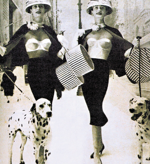50年代开始流行紧身内衣及造型文胸,后者就是现在隆胸乳罩的前身,可见女人不但积极塑造身体曲线,而且敢于向世人展现这种女性美。