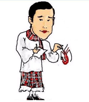 严格的说,小沈阳穿的只是山寨苏格兰裙,真正的苏格兰裙英文是Kilt,是手工缝制、用料精良的服饰,传统上大致用八码布料,裙子的长度以屈膝的时候裙边离地面一英寸半为准。穿苏格兰裙要先将右幅搭到左边并扣上单扣,再把左幅搭到右边扣上两个单扣才告完成。苏格兰人视苏格兰格子短裙为“正装”,因此做工非常讲究,价格自然也是不菲。用我朋友的话说,一看到苏格兰裙的花格子就想到花花绿绿的英镑钞票!