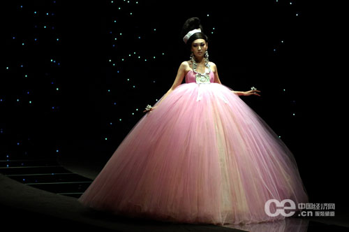 郭培:可以这么说。我的服装成本基本要超过十万元。因为它需要很多的时间,这些时间就好象我们的生命一样。一件服装如果以一个人的工时来算,可能要历时两年的时间来完成。那么这两年就好象他的生命的转移。这种价值不是说我们能用金钱的概念来计算的。我们大概有将近200个员工,一年的生产量是1500件,可想高级定制时装的生产量很低。所以,我觉得这就是一种艺术——时装的艺术,它表达的是一种对生活的理解。