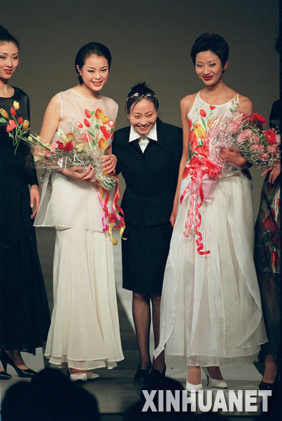 1997年5月,96/97年度中国“十佳”服装设计师吴海燕(右二)和她的模特在一起。