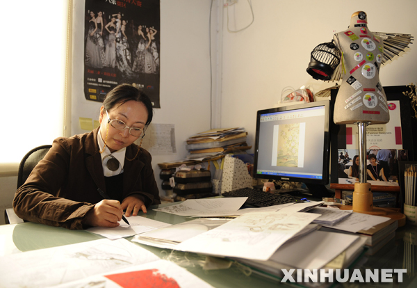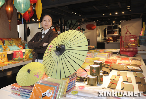 12月12日,吴海燕在她新近创立的品牌“东方国”创意产品旁。