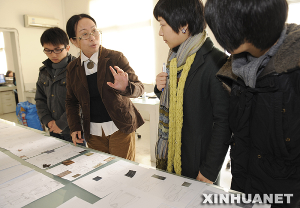 12月12日,吴海燕在为工作室里的年轻设计师点评一件国外设计师的作品。