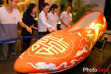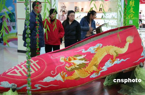 温州中国鞋文化博物馆展出的2米余长绣花鞋