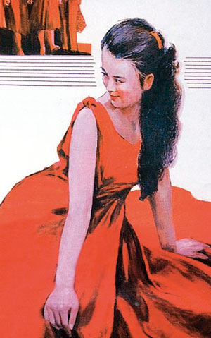 70-80年代,江青裙、白裙子、黄裙子、红裙子、碎花裙开始流行。这在穿衣色彩匮乏、黑白蓝当道的时代,成为爱美又不敢太张扬的女孩的首选裙装(图2、3、7)。尤其是《街上流行红裙子》的电影播出以后,大街上出现了“一片红”的局面,女孩子们都以穿红裙子为荣(图6)。